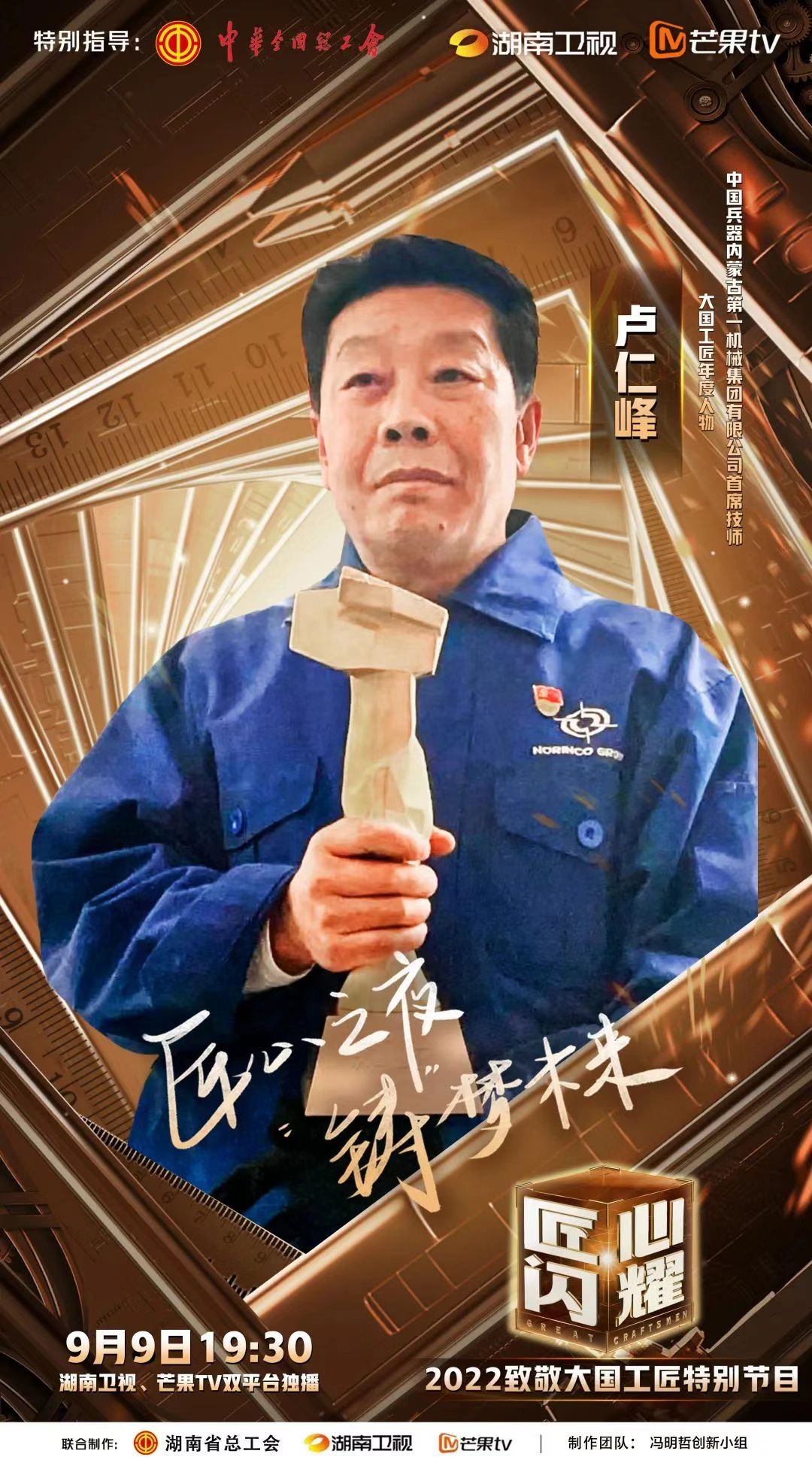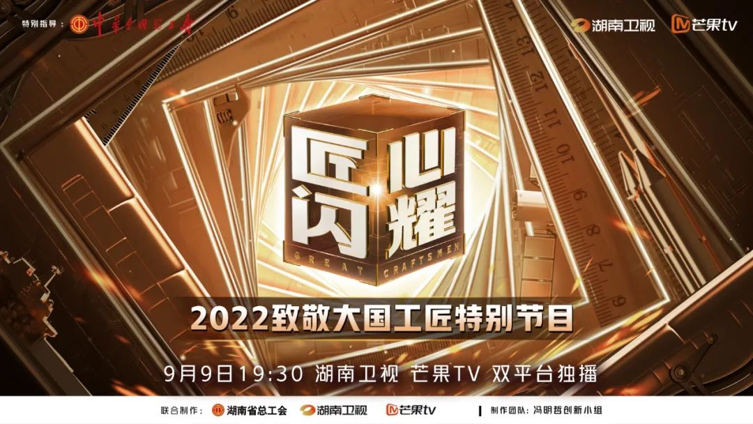 匠心之夜 ,铸梦未来!由中华全国总工会特别指导,湖南省总工会与湖南卫视、芒果TV联合出品的《匠心闪耀-2022致敬大国工匠特别节目》,将于9月9日19:30在湖南卫视、芒果TV双平台独播。节目聚焦工匠面孔,讲述工匠故事,邀请各行各业各领域的工匠们齐聚一堂,情绪共振、情怀共享,见证、倾听彼此工作、生活中或振奋、或温情的珍贵时刻。