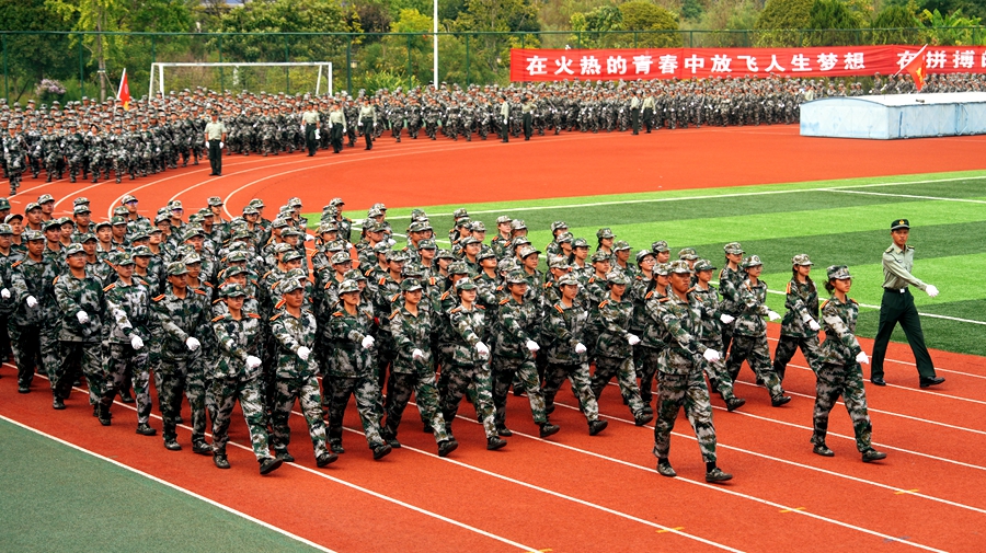 在党委书记秦裕辉的指示下,学生方阵分列式表演、特色方阵军训成果汇演依次进行。他们神情坚毅、气势如虹,尽显飒爽英姿,展现了中医学子锐不可当的青春力量和蓬勃向上的精神面貌。