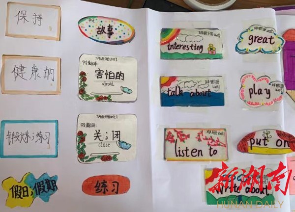 为提高学生学习英语的兴趣,南县厂窖镇中心小学英语教师想出一个主意:学生学习完一个单元英语单词以后,让他们自己制作单词卡片,要求用手掌大小的纸张,一面写上英文单词,另一面写上中文翻译,学生可以自主设计图案,然后互相提问。此方法,大大提高了学生学习英语的积极性,课堂上或下课后,学生用自己制作的单词卡片进行单词互相抽查过关,教室、走廊随处都能看到学生互相学习的身影以及抽查过关后开心的笑容。