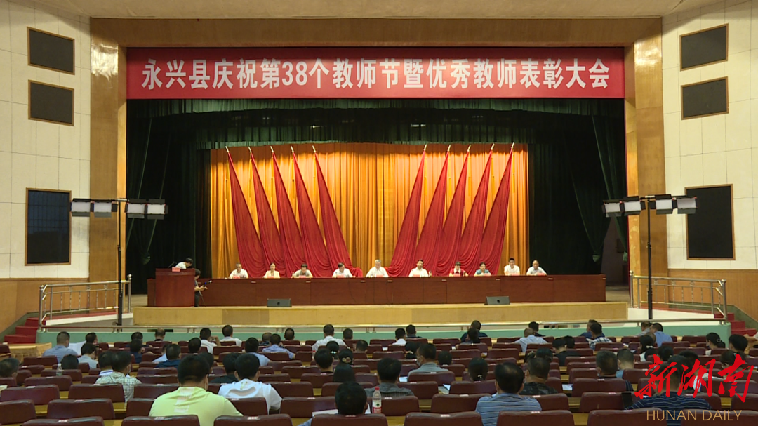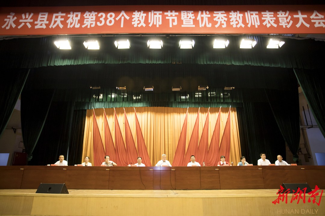 新湖南客户端9月9日讯(通讯员 王勇军 欧阳永强 廖仁君 )9月9日上午,2022年永兴县优秀教师表彰暨庆祝第38个教师节大会在永兴人民会堂举行。县委书记刘朝晖出席大会并讲话,县委副书记、县长宾心华主持大会。