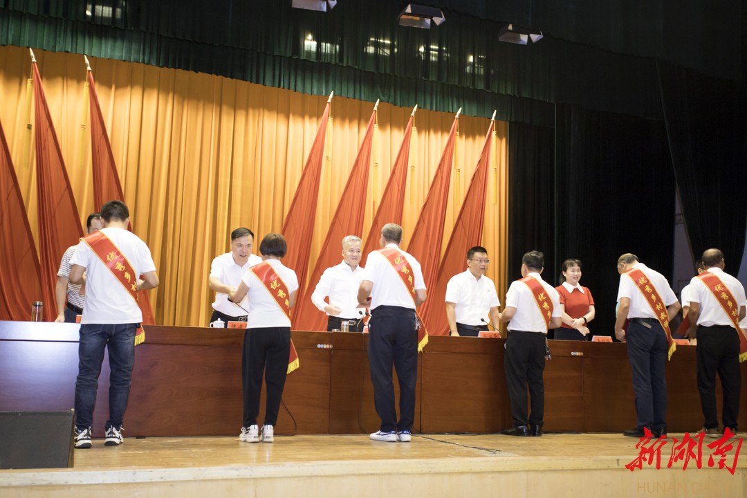 会议对金永强等10名模范教师、曹小芳等10名师德标兵、谭文岭等89名最美教师、许文飞等29名优秀乡村教师、彭展翔等30名优秀班主任、黄伟等10名优秀特岗教师、郭中池等19名最美教育工作者进行了表彰颁奖。最美教师永兴一中刘梅,师德标兵湘阴渡中心小学李业新作为获奖教师代表发言。
