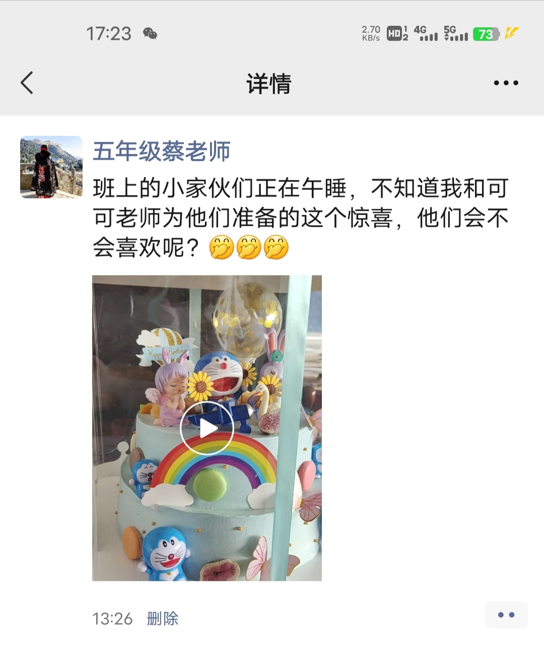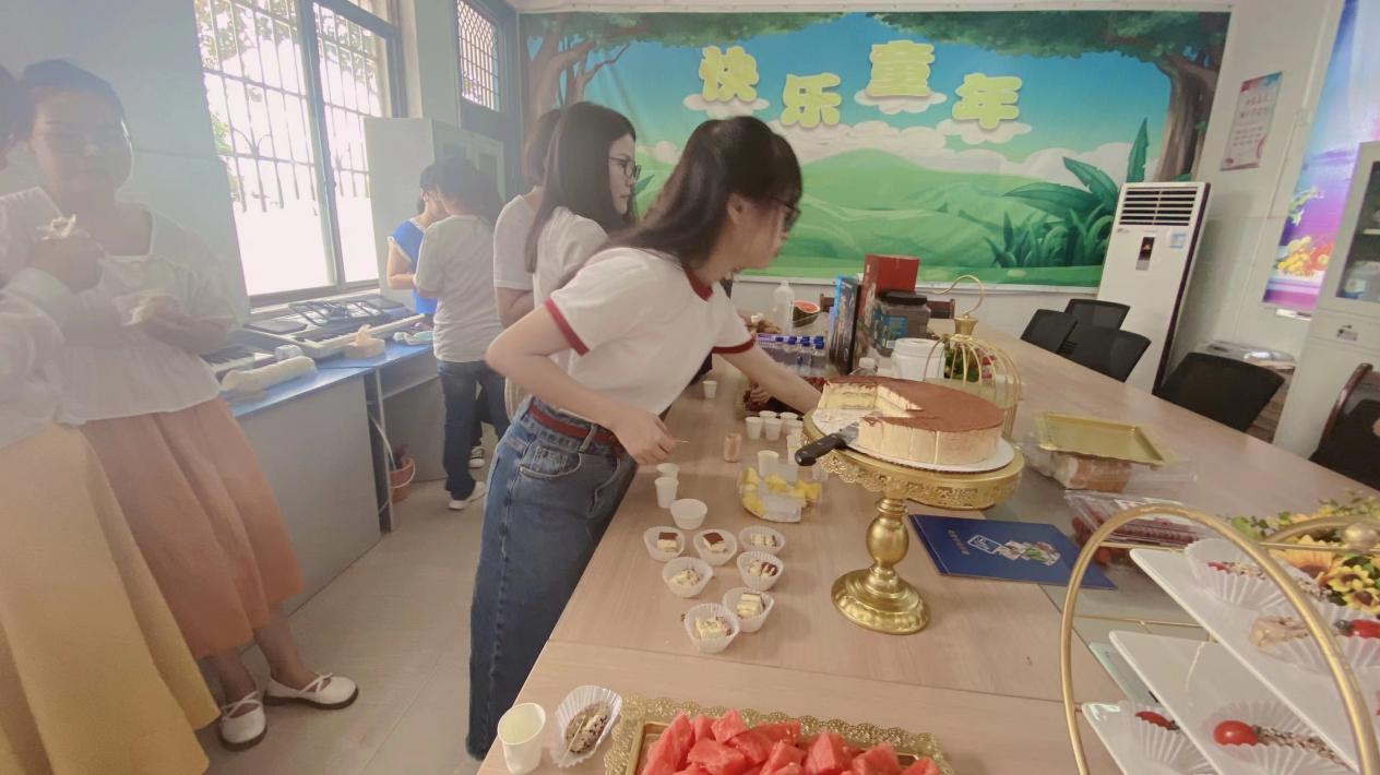 老师们也给孩子们准备了小惊喜,五年级的蔡老师和谢老师就为孩子们准备了一个精美的大蛋糕!