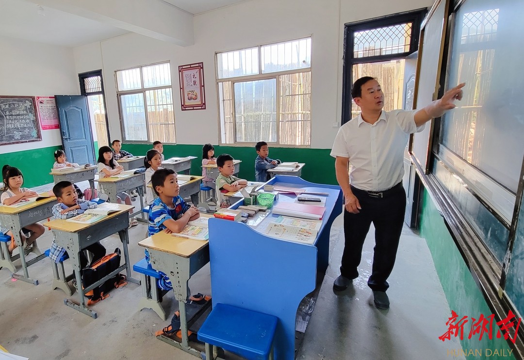 “叮铃铃、叮铃铃……”9月14日上午,常宁大山里的塔山瑶族乡中心小学,上课铃声响起,副校长、数学老师盘玖仁夹着教案走进教室,台下的孩子们早已端正坐好。