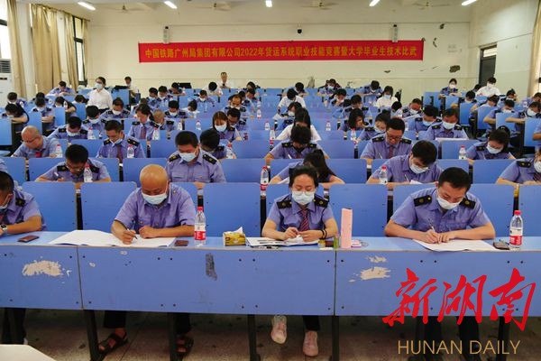 湖南日报·新湖南客户端9月1日讯(通讯员 郜邦国 邓娴 摄影 肖立康)近日,由中国铁路广州局集团有限公司主办,湖南高速铁路职业技术学院铁道运输学院承办的2022年货运系统职业技能竞赛暨大学毕业生技术比武落下帷幕。在比赛中,铁道运输学院9名学生获得10余项奖项。其中,铁运2007班詹谋亮获得全能一等奖、实作一等奖、理论三等奖;14级毕业生,来自衡阳车务段货检车间的杨顺获得货运检查员理论、实作、全能3个第一。