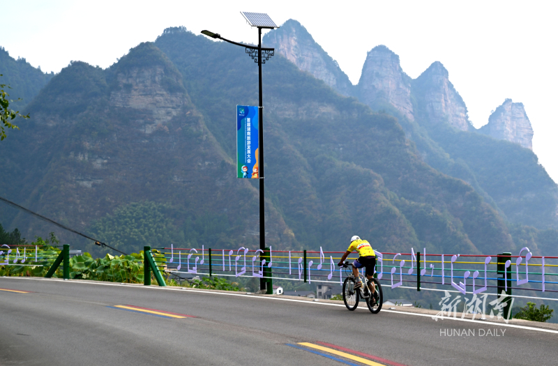 9月13日,张家界市武陵源区协合乡,市民在提质改造后的“最美骑行乡村路”上骑行。近年,该区大力实施交通先行工程,以产业路、旅游路等高质量推进“四好农村路”,推动“交通 旅游”“交通 产业”,助力乡村振兴驶入“快车道”。湖南日报全媒体记者 郭立亮 通讯员 吴勇兵 摄影报道