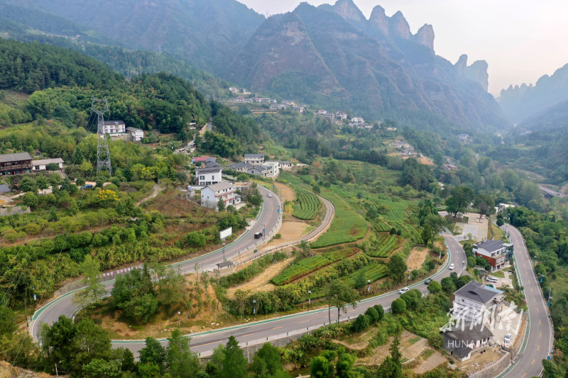 9月13日,张家界市武陵源区协合乡,提质改造后的插梓线公路蜿蜒起伏,与特色民宿、乡村农庄、梯田和景观带等构成一幅美丽乡村风景画。近年,该区大力实施交通先行工程,以产业路、旅游路等高质量推进“四好农村路”,推动“交通 旅游”“交通 产业”,助力乡村振兴驶入“快车道”。湖南日报全媒体记者 郭立亮 通讯员 吴勇兵 摄影报道