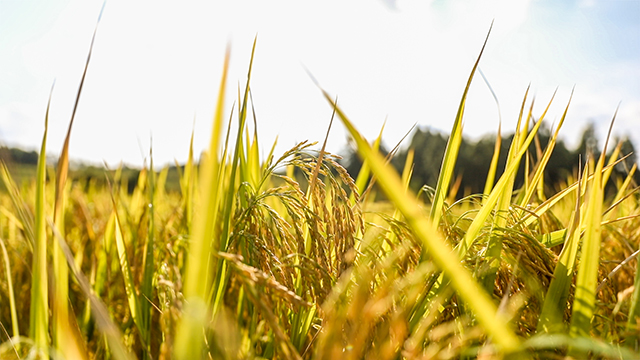 金秋时节,在会同县乡村田野里,沉甸甸的稻穗沐浴阳光,随风摆动,如同掀起层层金浪,在秋风中哗哗作响,传递着收获的喜悦气息。