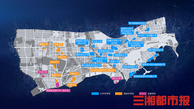 同时,南雅梅溪湖中学(暂定名)、平安小学、映日小学正在火热建设中,计划于2023年秋季开学,师大附中梧桐学校(暂定名)计划于2024年开学。