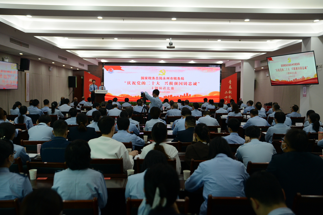 在党的二十大胜利召开之际,为在全市税务系统迅速兴起学习贯彻党的二十大报告的热潮,激励广大干部职工奋进新征程、建功新时代,10月19日,国家税务总局永州市税务局举办“庆祝党的二十大 兴税强国铸忠诚”主题演讲比赛。
