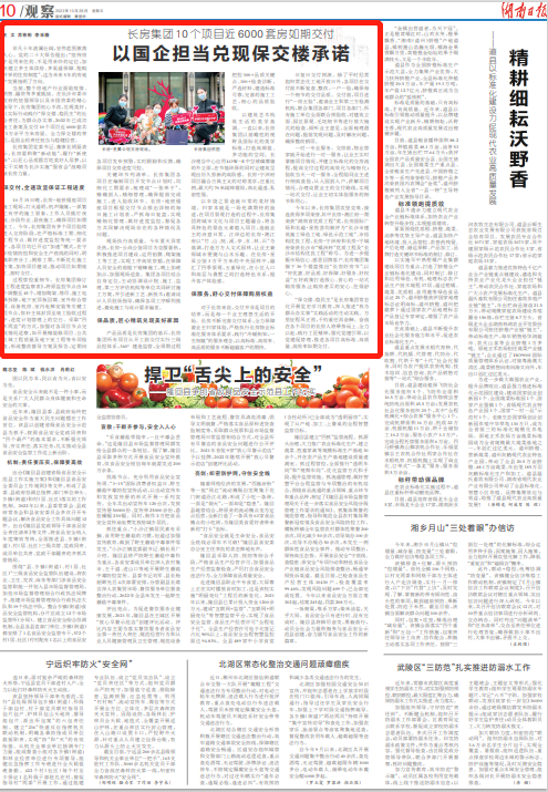 当前,整个房地产行业面临疫情、销售、融资等多重挑战。在长沙市委市政府的坚强领导以及市国资委的精心指导下,长房集团初心不改,兑现美好,以实际行动践行“保交楼、稳民生”的社会责任,为群众办实事,2022年已成功竣工备案及交付10个项目近6000套共73万余平方米房屋。全力保交楼的背后,是国企的责任担当与稳健经营。