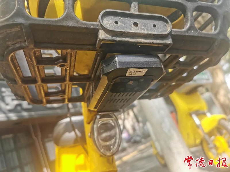 (目前,市城区部分共享单车车筐下已安装AI智能识别系统。李萌 摄)