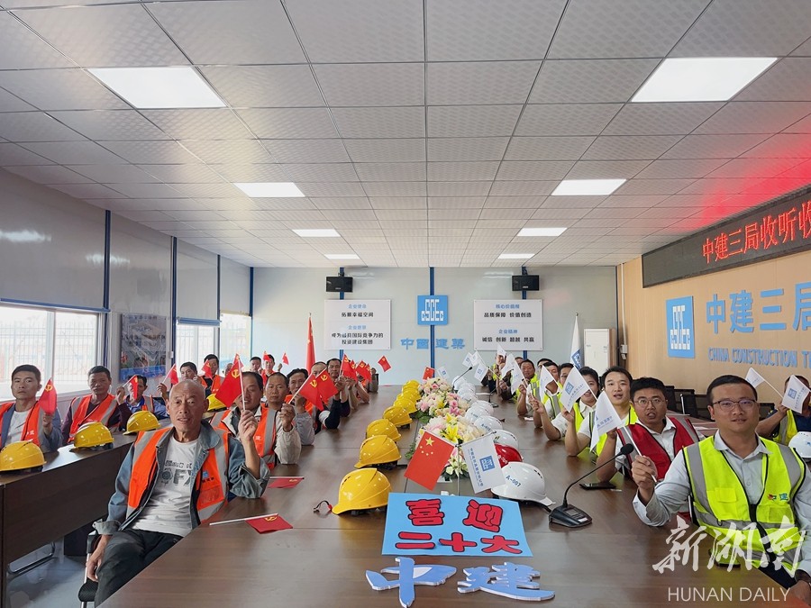 中建三局中南分公司组织管理人员及工友集中收看党的二十大开幕会盛况。傅子昱 摄