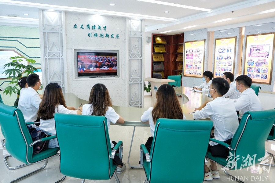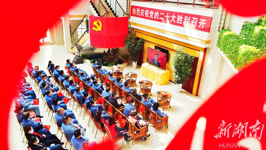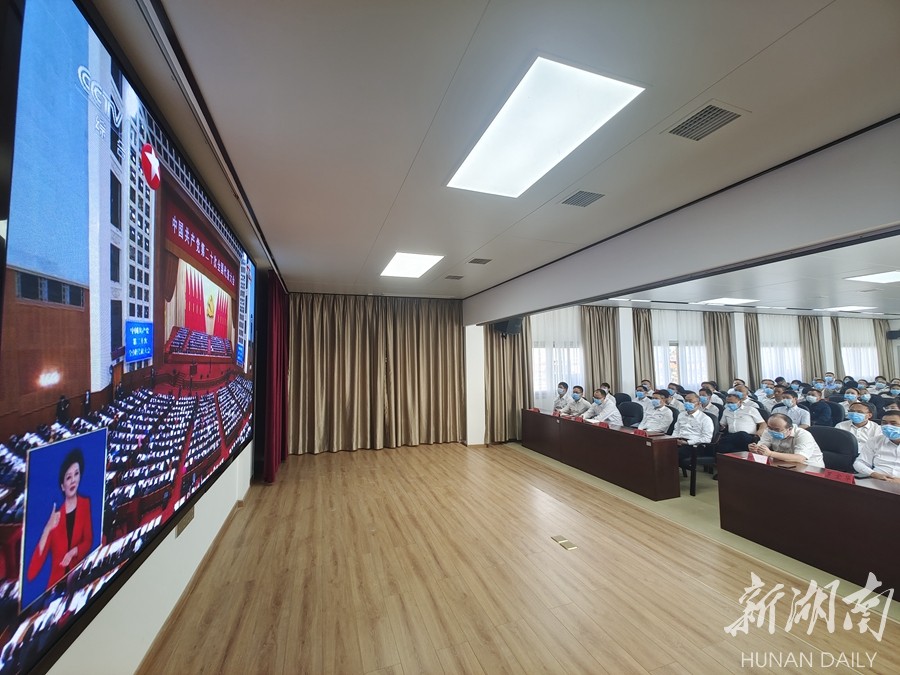 湖南湘投控股集团下属湖南湘投铜湾水利水电开发有限责任公司员工集中收看党的二十大开幕会盛况。杨国辉 范莺 摄影报道