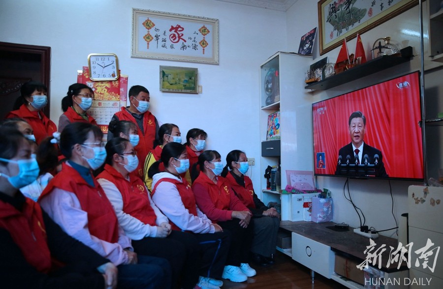 娄底市娄星区花山街道办事处山塘社区组织居民集中收看党的二十大开幕会盛况。刘新山 摄