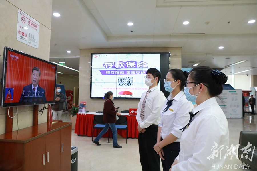 中国邮政储蓄银行长沙市分行组织全体干部职工集中收看党的二十大开幕会盛况。湖南日报全媒体记者 易昂 摄