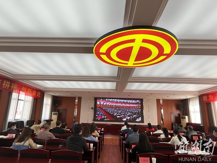 湖南省核地质调查所、核工业长沙中南建设集团有限公司组织党员干部集中收看党的二十大开幕会盛况。 彭定湘 摄