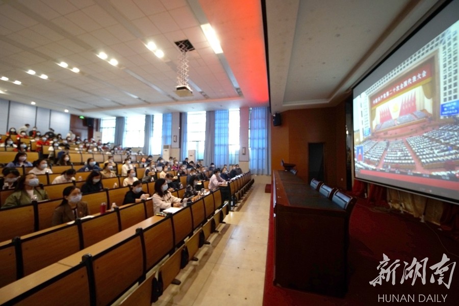 湖南外贸职业学院组织教职工集中收看党的二十大开幕会盛况。郑翔 摄