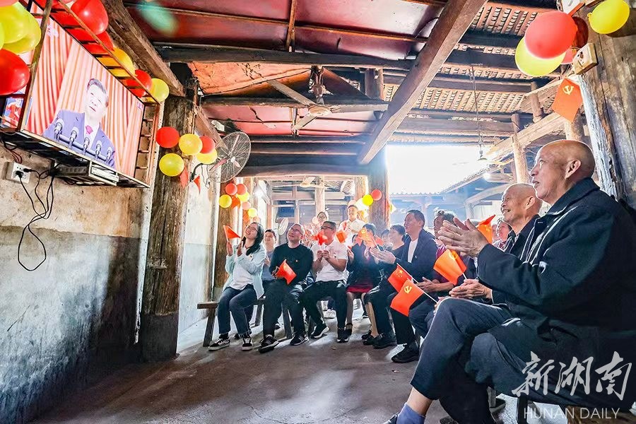 浏阳市大瑶镇杨花村杨花书院,党员群众集中收看党的二十大开幕会盛况。彭红霞 摄