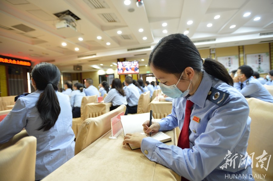 国家税务总局永州市冷水滩区税务局干部职工集中收看党的二十大开幕会盛况。周密 何薇 摄影报道