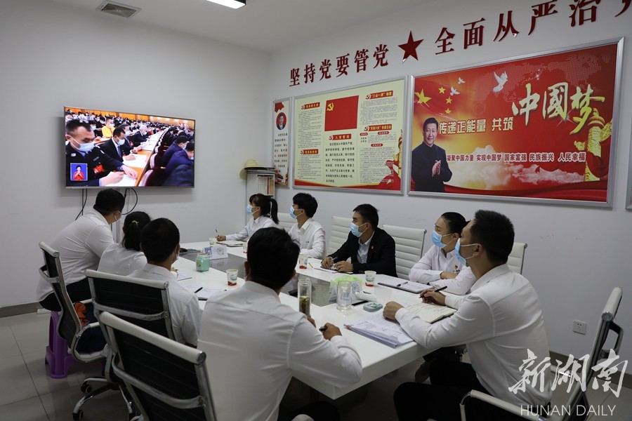 湖南省儿童医院儿童健康管理中心党支部党员集中收看党的二十大开幕会盛况。李奇 摄