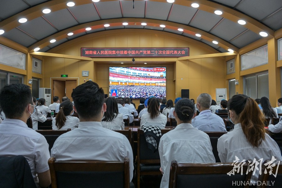 湖南省人民医院医护人员集中收看党的二十大开幕会盛况。申勇 摄