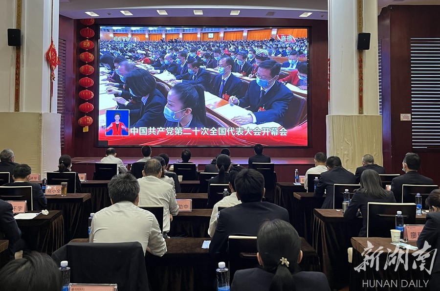 湘潭市组织党员干部集中收看党的二十大开幕会盛况。方阳 摄