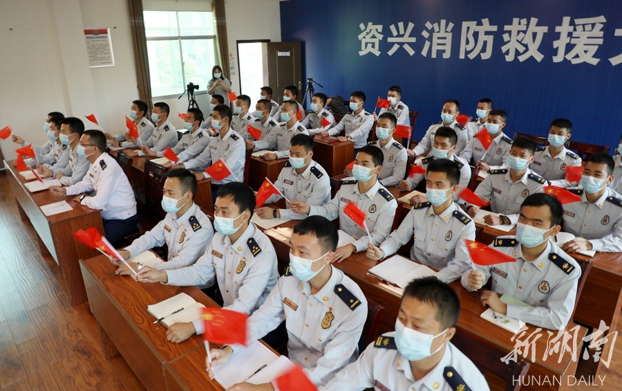 资兴市消防救援大队组织消防员集中收看党的二十大开幕会盛况。李科 王瑞琴 摄 摄影报道