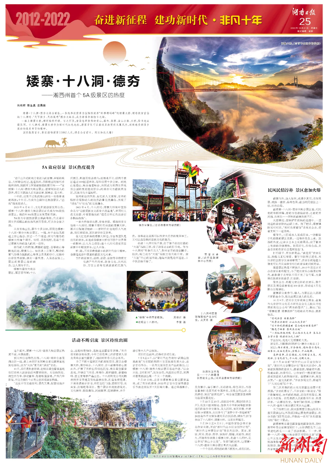 2021年6月11日,文化和旅游部发布公告,矮寨·十八洞·德夯大峡谷景区正式成为5A级旅游景区。湘西州5A级景区实现零的突破。
