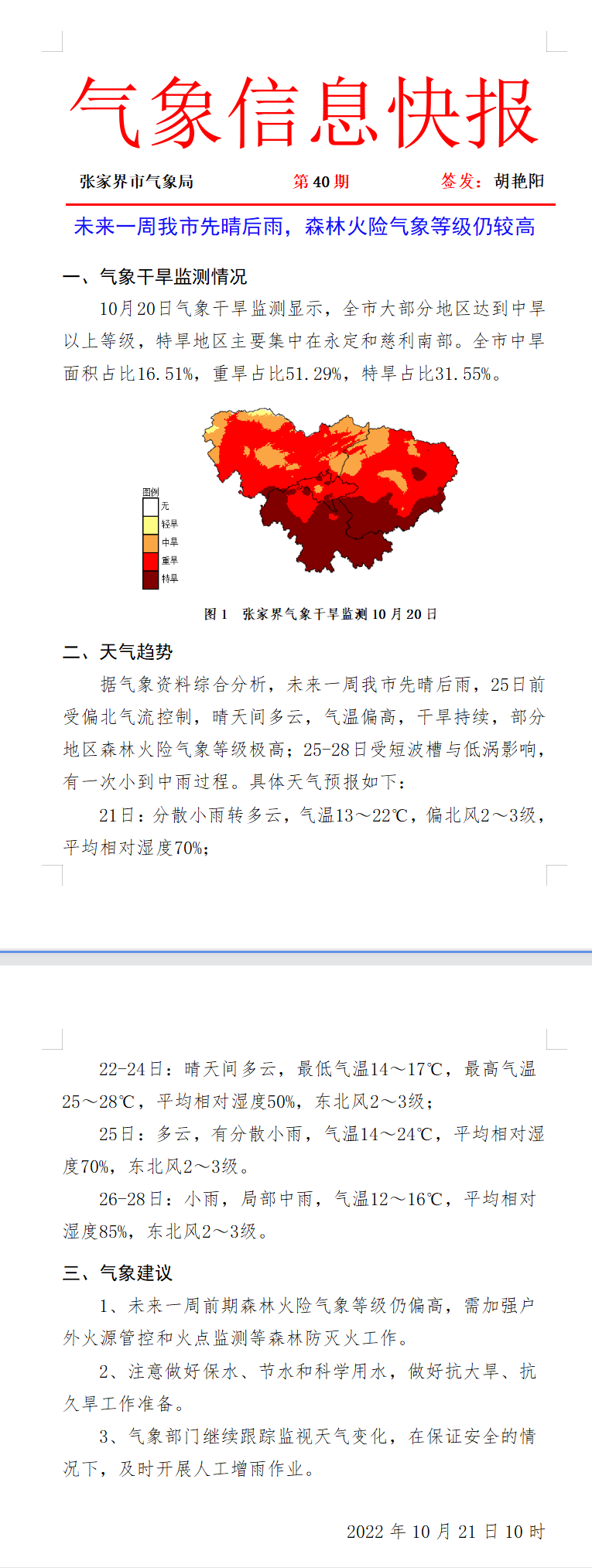 湖南省森林防灭火指挥部办公室、张家界天气 2022-10-21 16:01:07