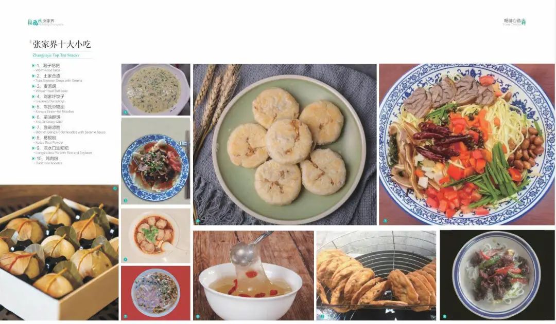 本画册图文并茂,内容丰富,分为“奇峰秀水”“人文荟萃”“山城趣游”“畅游心选”四大板块。画册中不仅收录了集旅游“吃、住、行、游、娱、购”为一体的优秀摄影作品300余幅,还在“山城趣游”板块中展现了小板块“激情体育”中的翼装飞行、大峡谷蹦极、茅岩河快艇、樟树营等。“快乐研学”小板块中进行了市博物馆、张家界世界地质公园博物馆、张家界旅游商品产业园等多方位游玩体验推介。除此之外,还涵盖了张家界十大名菜、张家界十大小吃、张家界十大餐饮名店等,让广大游客朋友感受景区景点之余,能够体验张家界最地道美味的本土特色美食。
