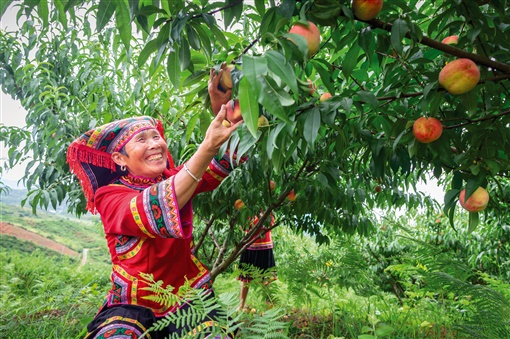 江华瑶族自治县桥市乡野猪桥村,水蜜桃种植带来“甜蜜收益”。 李忠林 摄