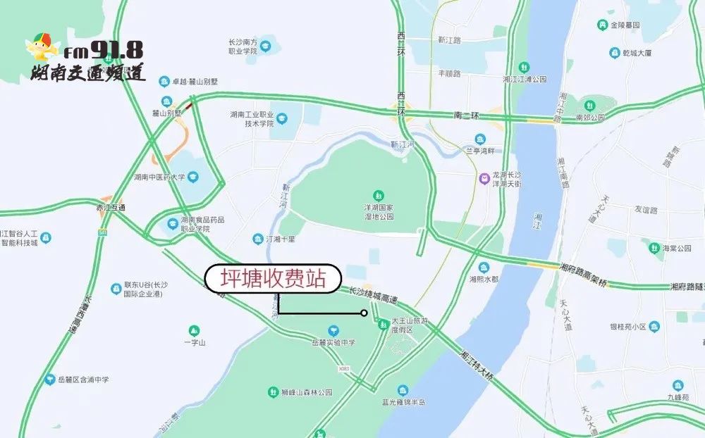 ●河西的驾驶员建议选择长潭西高速学士收费站上下高速。