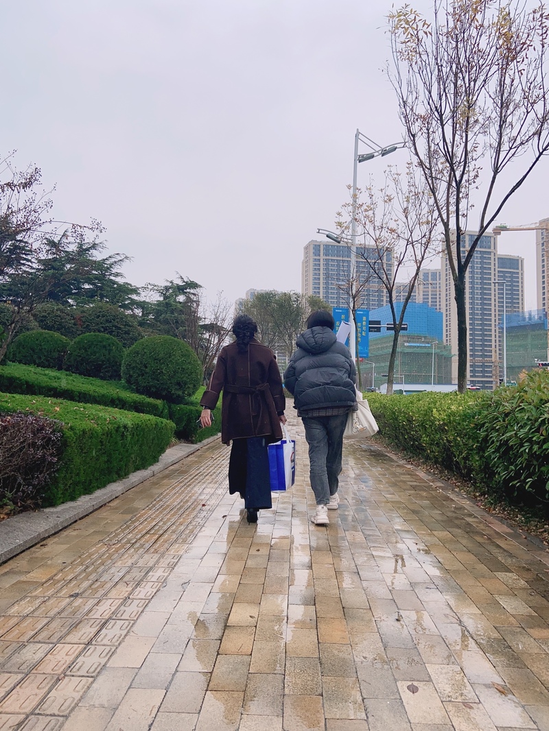 11月22日,刘暖曦和代理律师前往法庭的路上。受访者供图