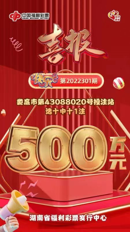 11月11日,快乐8游戏第2022301期,我省娄底市43088020号投注站中出1注选十中十,中奖奖金500万元,同期长沙市43014824号站点也幸运中出1注选九中九,中奖奖金30万元。总有购彩者说,这么多号码,买什么呢?不用犹豫不用彷徨,机选解决您的选号烦恼,本期选十中十和选九中九均是机选,有时候运气来了,真的挡也挡不住。
