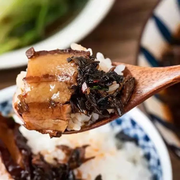 饱吸了汤汁的梅菜芳香浓郁,吃起来咸中略带甜味,与肥瘦相间的五花肉一同拌上米饭,如此的软糯醇香,吃一口满嘴香!