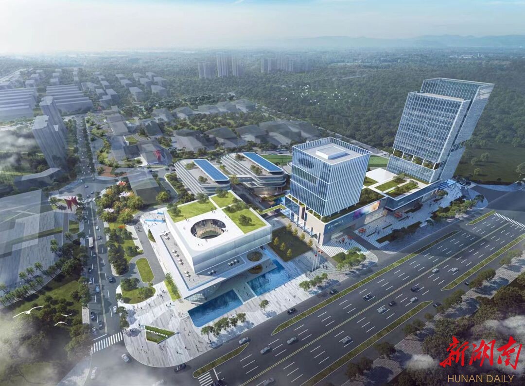 金龙先导区位于长沙市北、岳阳市湘阴县城南部,总用地面积约386亩。项目定位为绿色智创产业领航基地、规划为产业示范的生态智慧谷。正在建设中的项目一期将重点打造湘江智造中心,包含总部办公及产业服务中心、展示中心、研发办公楼等业态,预计展示中心年内完成封顶,2023年对外开放。