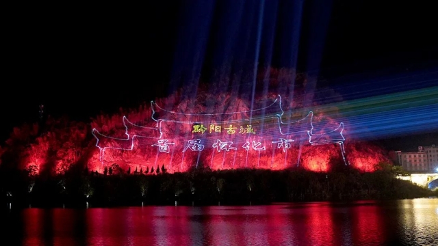 据了解,灯光秀是一场以沅水为纽带,采用三体染色、激光投影、远程光电束等相结合的三体演艺秀,图案融合了我市古城风貌、文人诗话、稻香世界、红色文化等诸多元素,将在首届怀化市旅游发展大会期间正式亮相。