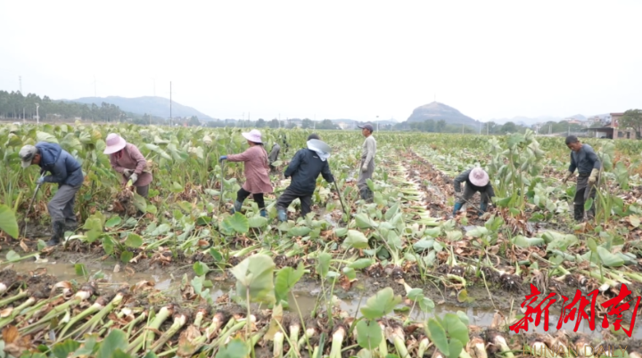 同时,在该县大路铺镇石下村,村民正热火朝天地围着小山似的香芋堆,忙着削皮、分拣、装袋。大家十分忙碌,不时充满欢声笑语,沉浸在一派丰收的喜悦中。种植户刘品顺在石下村流转了300余亩土地种植香芋、马蹄等,并与广西、江永等地加工厂采用订单式合作,装车之后直接就可以发往工厂。