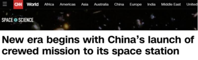 美国有线电视新闻网报道称,三名中国航天员前往中国即将完工的空间站,标志着中国开始在太空长期存在,开启了一个新的时代。