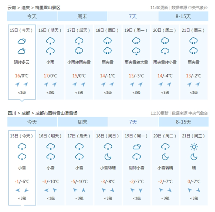 (对!它们都是这次雨雪集中的西南地区的雪山)