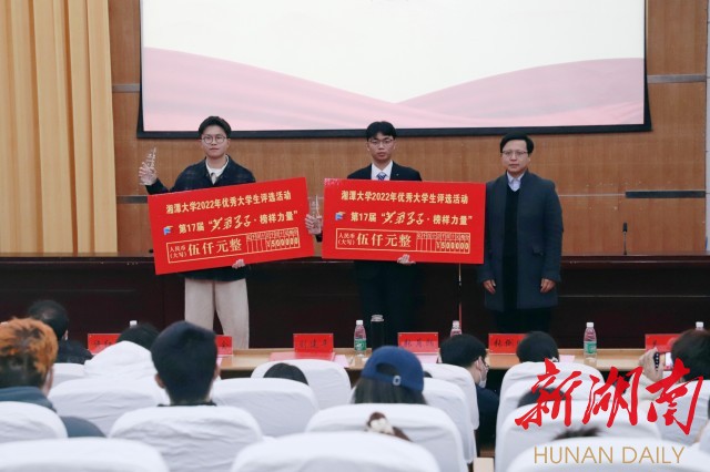 湖南日报·新湖南客户端12月15日讯(通讯员 奉明辉 姚茜洋 彭宇璐)12月13日下午,湘潭大学第十七届“芙蓉学子·榜样力量”优秀大学生颁奖典礼暨宣讲会举办。副校长刘建平出席。