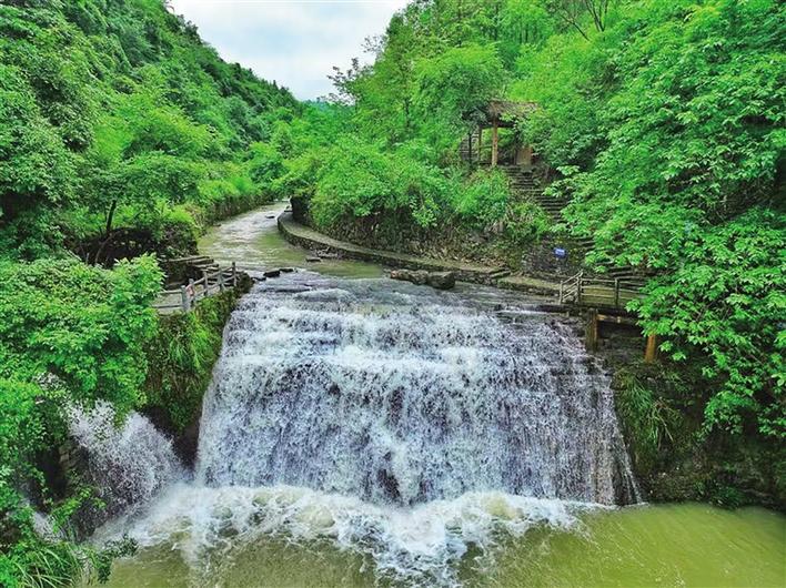 飞花瀑能让游客体验到水中攀岩的刺激与快乐。 吴东林 摄