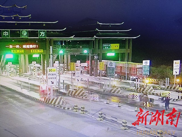 当天23时许,中方收费站当班收费员向凌云发现三头水牛(两头大牛,一头小牛)出现在车道并向高速走去。“班长,车道里有几头牛,快来!”向凌云立即通知当班班长。