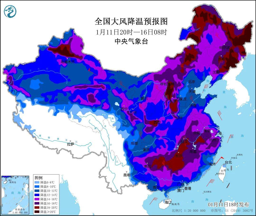 今年首场寒潮已于1月11日启程,未来五天将大举南下横扫我国大部地区,带来剧烈降温和风沙雨雪天气。此次寒潮将直抵海南,降温区域覆盖我国29省区市,前期持续偏暖的东北、江南等不少地方将上演冷暖大逆转,哈尔滨、合肥、南京等地气温或骤降近20℃。