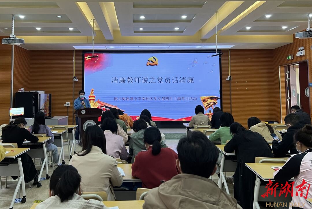 “无论是在家里还是学校,无论是在国内还是国外,徐特立始终勤俭朴实,廉洁奉公……”日前,博才梅溪湖小学开展“清廉教师说之党员话清廉”主题党日活动,4名党员教师依次上台讲述清廉故事,传承清廉师风。