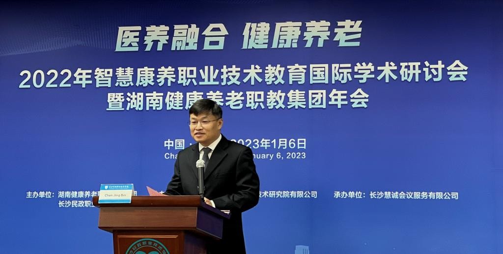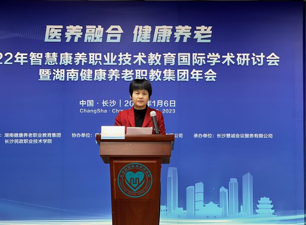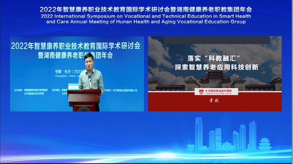 2023年1月6日,2022年智慧康养职业技术教育国际学术研讨会以线下与线上相结合的方式在长沙民政职院顺利召开。同期还举行了2022年湖南健康养老职业教育集团年会。本次会议邀请了多位国内外专家,聚焦医养融合、智慧康养等养老相关领域,深入研讨国际先进技术和经验,以期进一步促进养老相关领域国际交流与合作,实现资源共享、优势互补,共同努力为行业企业培养更多高素质医养融合、智慧康养专业人才,全面提升医养融合、智慧康养养老职业教育水平。国内外养老行业专家、同仁及湖南省健康养老职教集团理事、会员及职业院校师生线上收看,累计观看人次2.2万余。