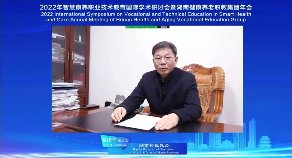 开幕式上,湖南省民政厅蒋建华副厅长指出,党的二十大报告已将积极应对人口老龄化确定为国家战略,召开本次会议对引进和借鉴国内外先进技术和经验,全面提升医养结合养老人才培养水平具有十分重要的意义。湖南省健康养老职教集团理事长、长沙民政职业技术学院党委书记李斌致辞,介绍了长沙民政职院智慧健康养老人才培养的成就,并向一直以来关心和支持智慧康养职业技术教育发展的各位领导、各位朋友表示最衷心的感谢。湖南省健康养老职教集团秘书长、长沙民政职业技术学院医学院院长黄岩松作了2022年湖南省健康养老职教集团工作报告暨2023年工作计划汇报。开幕式由长沙民政职业技术学院校长陈静彬主持。