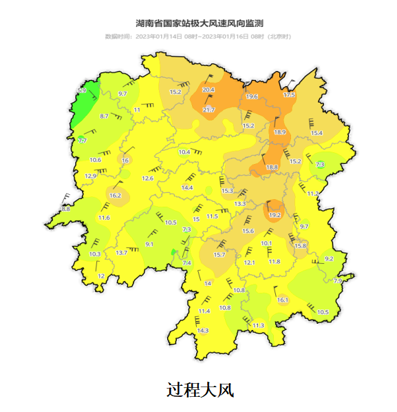 二是风力大。大部分地区出现5~6级大风,其中洞庭湖区及湘江中下游地区7~8级,最大为常德市区21.7米/秒(9级)。