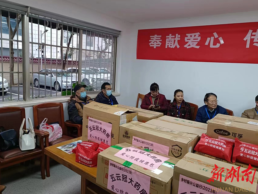 湖南日报·新湖南客户端1月8日讯(记者 李文耀)1月8日,五云冠大药房的爱心人士来到湖南日报社宿舍小区,开展“迎新春、献爱心”公益活动,向报社的高龄老人们捐赠爱心防疫健康包。