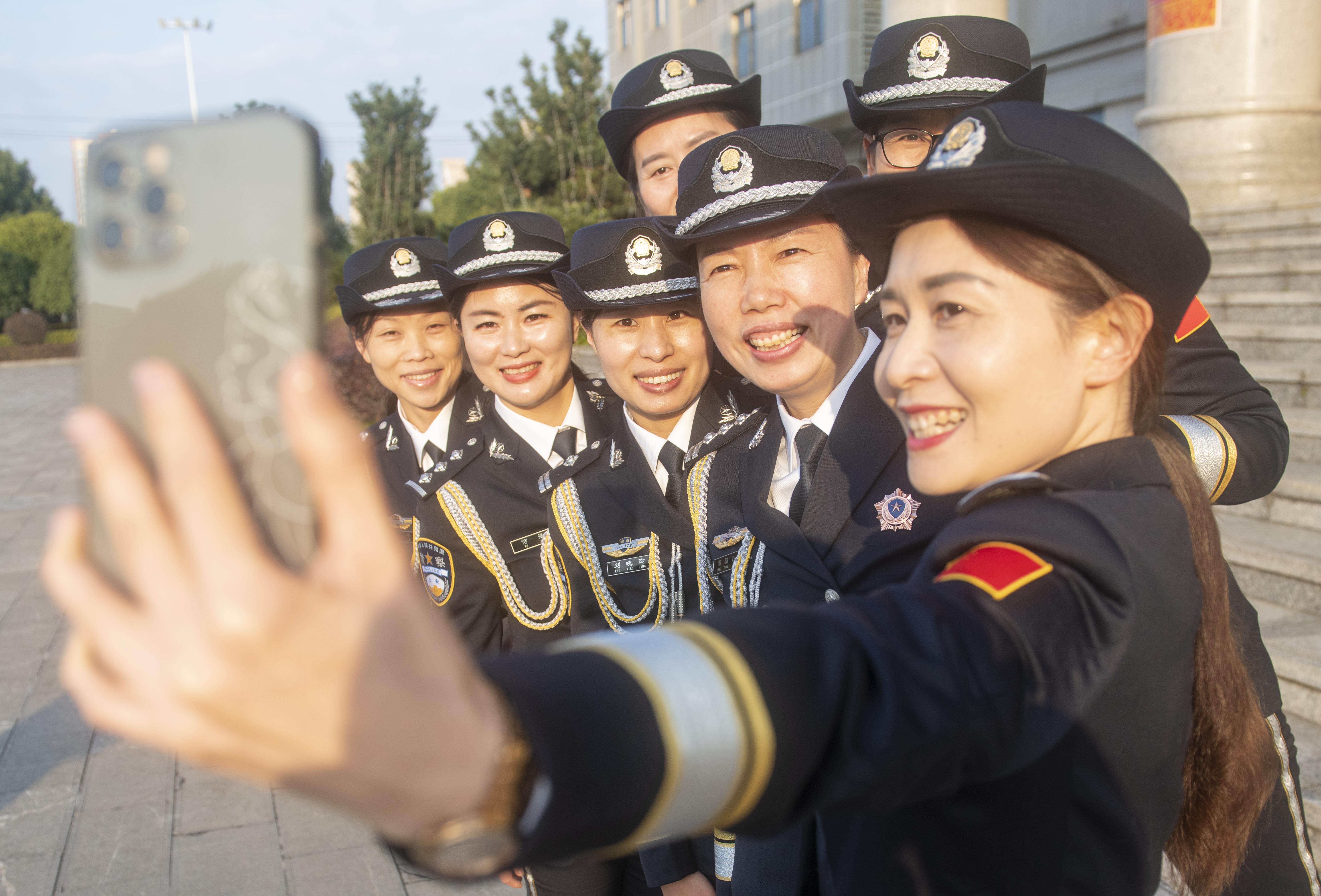 1月10日,道县公安局办公楼前,民警在重温入警誓词后自拍留影。当天是第三个中国人民警察节,该县开展重温入警誓词、警务装备展示、安全知识宣传、主题教育等活动庆祝警察节。蒋克青 刘晓玲 摄影报道(一审:马俊达 二审:王立三 三审:刘建光)